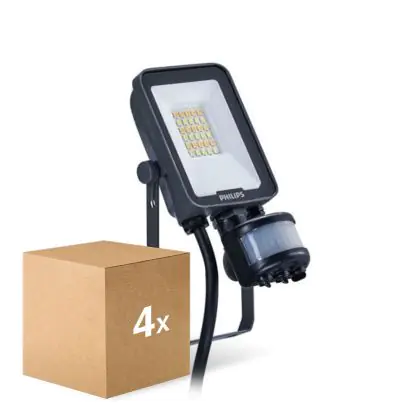 Descrizione Confezione Multipack 4x Philips Proiettore LED Ledinaire BVP167 10W 1200lm 110D - 830-840-865 CCT | IP65 - Sensore di Movimento e Luce - Simmetrico
