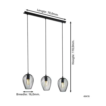 Eglo Luce Pendente Newtown Acciaio Nero | IP20 - Adatto per 3x E27