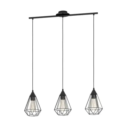 Eglo Luce Pendente Tarbes Acciaio Nero | IP20 - Adatto per 3x E27