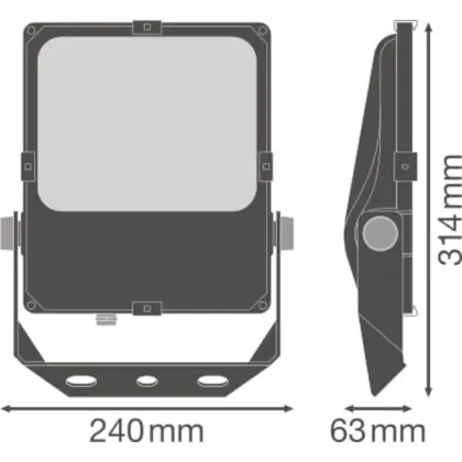 La copertura ottica in vetro temperato permette una distribuzione luminosa uniforme. In pochi secondi dall’accensione questo proiettore LED Ledvance raggiunge la luminosità massima di 5800 lm. Il flusso luminoso emesso è asimmetrico (55° x 110°).