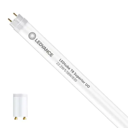 Il Ledvance Tubo LED T8 Superior (EM/Mains) Ultra Output 22.2W 3690lm - 830 Luce Calda | 150cm - Sostitutiva 58W è l’alternativa perfetta per il tubo fluorescente standard 58W nelle plafoniere con un reattore. Con questo tubo LED hai una garanzia di una vita media utile molto lunga e 5 anni Lampadadiretta.it di totale garanzia. .