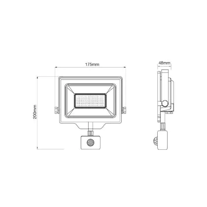 Descrizione Noxion Proiettore LED Beamy G3 50W 5500lm 110D - 830 Luce Calda | IP65 - Sensore Di Movimento E Luce - Simmetrico