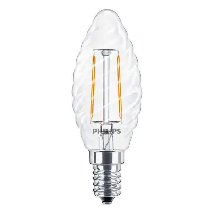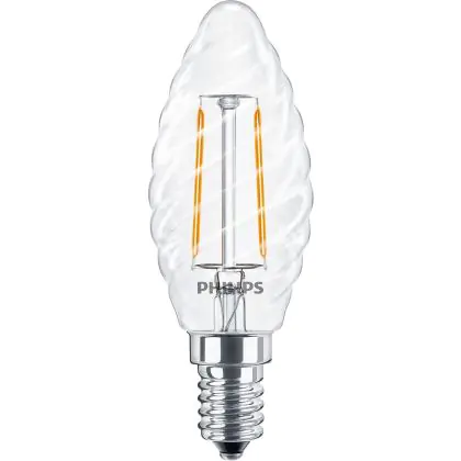 La lampada Philips Corepro LED Candela E14 Attorcigliata Candela Filamento Chiara 2W 250lm - 827 Bianco Molto Caldo | Sostitutiva 25W è il sostituto perfetto per le tue vecchie lampade 25W con attacco a vite piccolo E14 grazie alla sua tecnologia LED. Passare a LED ti offrirà molti vantaggi!