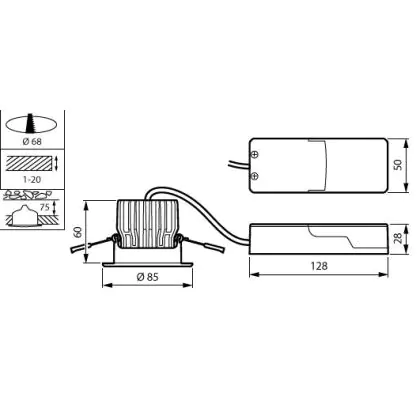 Descrizione Philips Faretti LED RS155B CoreLine Aluminium Bianca 12.3W 1300lm 36D - 830 Luce Calda - | 85mm - Ritaglio 68mm - IP20/65 - Dimmerabile