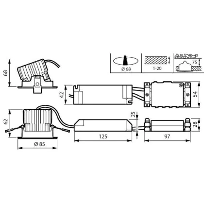Descrizione Philips Faretti LED RS156B CoreLine Aluminium Bianca 12.3W 1380lm 36D - 840 Bianco Freddo | 85mm - Ritaglio 68mm - IP20/44 - Dali Dimmerabile